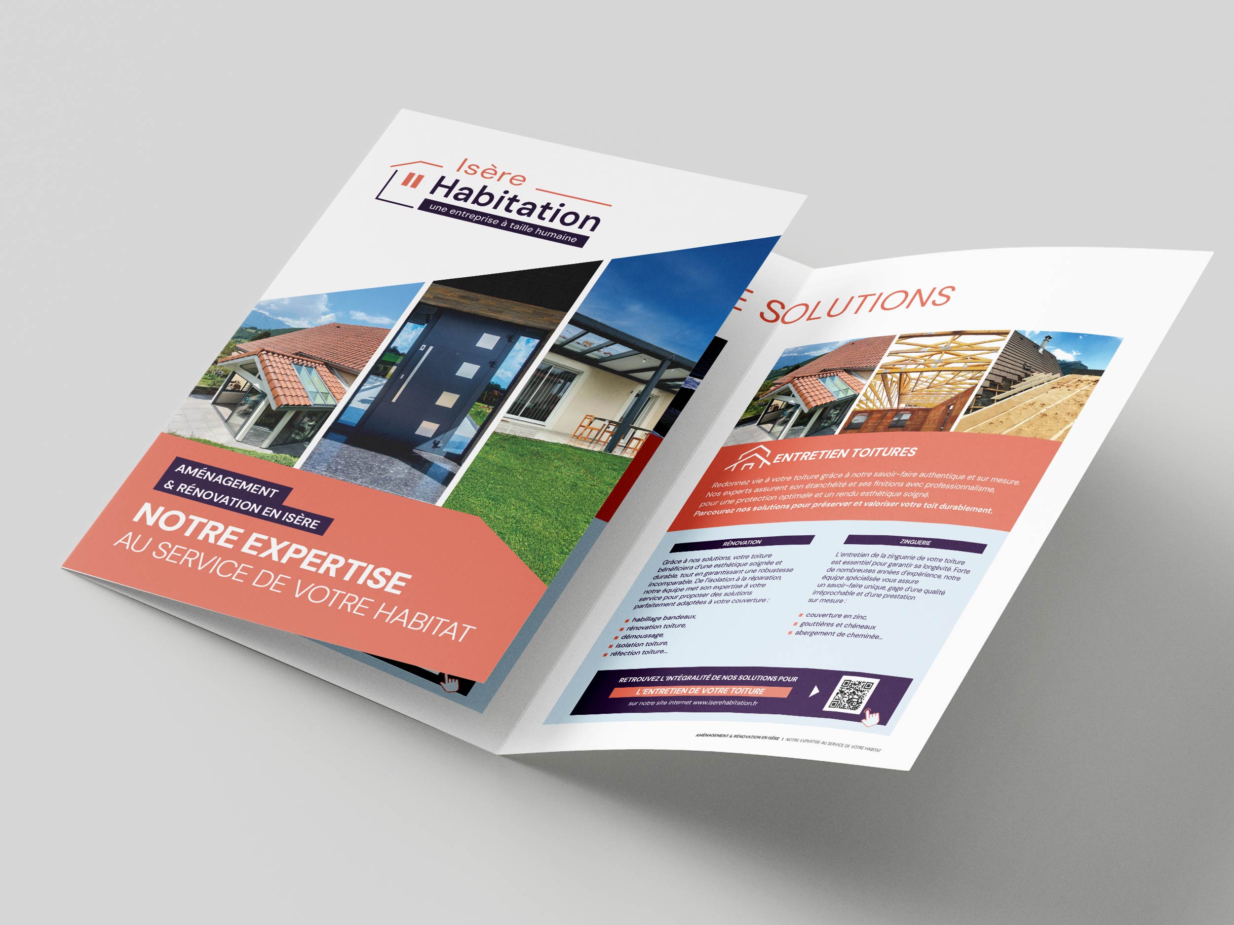 Création graphique d’une plaquette commerciale et des différents supports de communication de la société Isère Habitation.